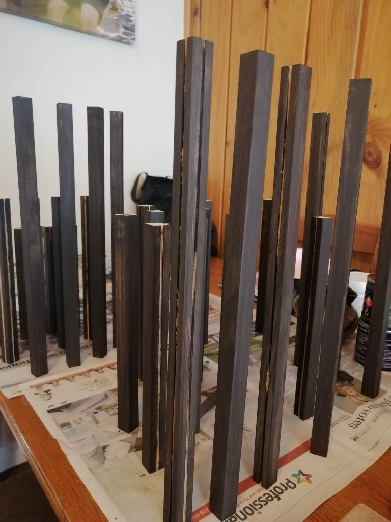 I am going for an older look matching with the handles I was able to keep for my cupboard doors, so chose a dark walnut stain, and I’m pretty happy with the result.