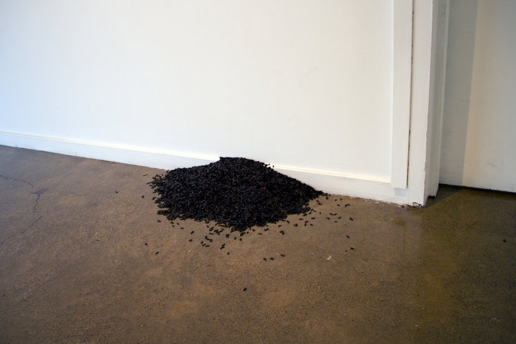 Rawhaki/Massed, heaped up, 2018. Harakeke seeds, endless supply.