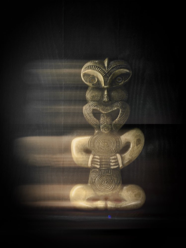 Fiona’s principal medium is photography however her inventive and and unpredictable techniques imbue a mauri within them that gives a theatrical feel when viewing her images. Her works of taonga held within museums, shows the life of teach taonga that Maori believe is in all things. The taonga suddenly become living breathing objects moving, dancing, even talking if the viewer is willing to look through a Te Ao Māori lens. Taking the time to see the taonga in this way and then to share this view with the world adds to the mana of each the taonga included that is normally locked away in institutions and often forgotten.
