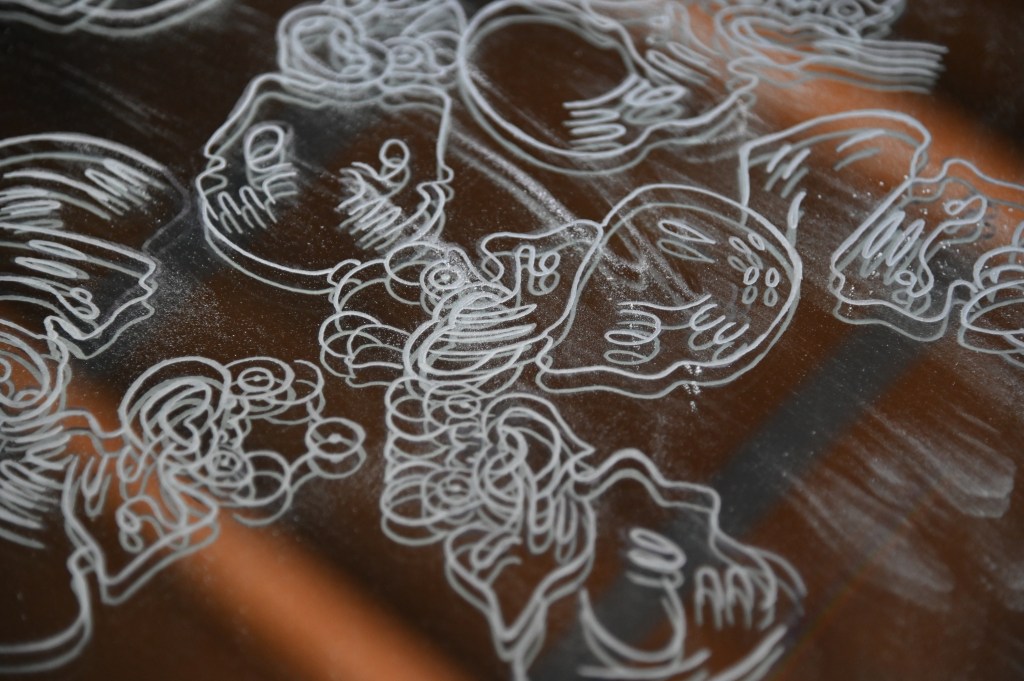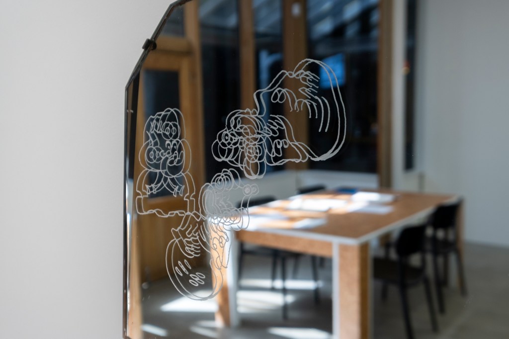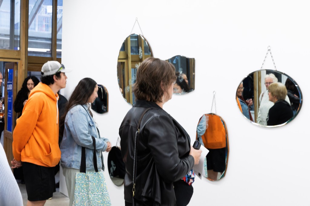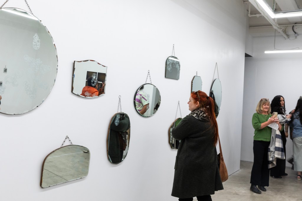 Written by Brooke Pou, “Waitirohia by Tessa Russell features a new series of engraved vintage mirrors that are a tribute to a moment – the very first time the artist saw her reflection after receiving her moko kauae. According to Russell, that moment in the mirror “changed everything.” For so long she felt out of place in her own skin, but when she looked into that mirror, she saw someone she recognised but had never met. She saw her tūpuna. She saw herself.